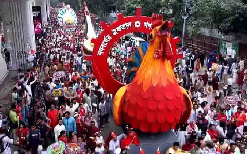 বর্ণিল সাজ ও উৎসবমুখর পরিবেশে ঢাকা বিশ্ববিদ্যালয়ের চারুকলা অনুষদের সামনে থেকে ঐতিহ্যবাহী বৈশাখী শোভাযাত্রা বের হয়েছে। এবারের নববর্ষ উদযাপনের মূল প্রতিপাদ্য নির্ধারণ করা হয়েছে ‘নববর্ষের ঐকতান, গণতন্ত্রের পুনরুত্থান’।